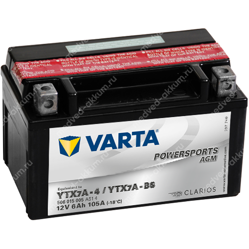 Varta AGM 6 Ач 506015005 (YTX7A-BS)